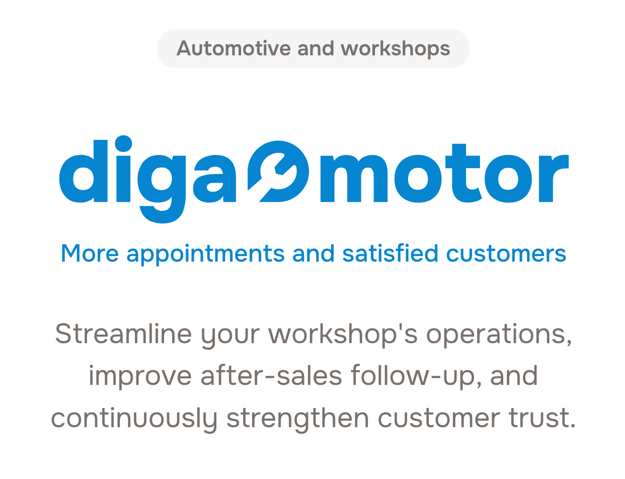 The same pattern applies to a restaurant with DigaFood or a workshop with DigaMotor: set the rules, connect the calendar, let the agent handle routine conversations and keep the human team for the moments where they add the most value.